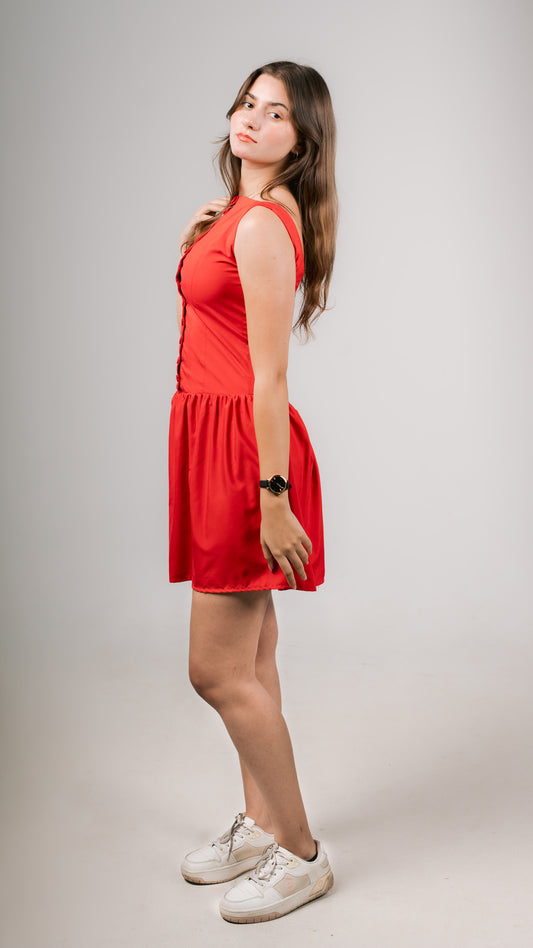 The Muse Dress with Removable Shoulder Flower Attachment in Red Rose