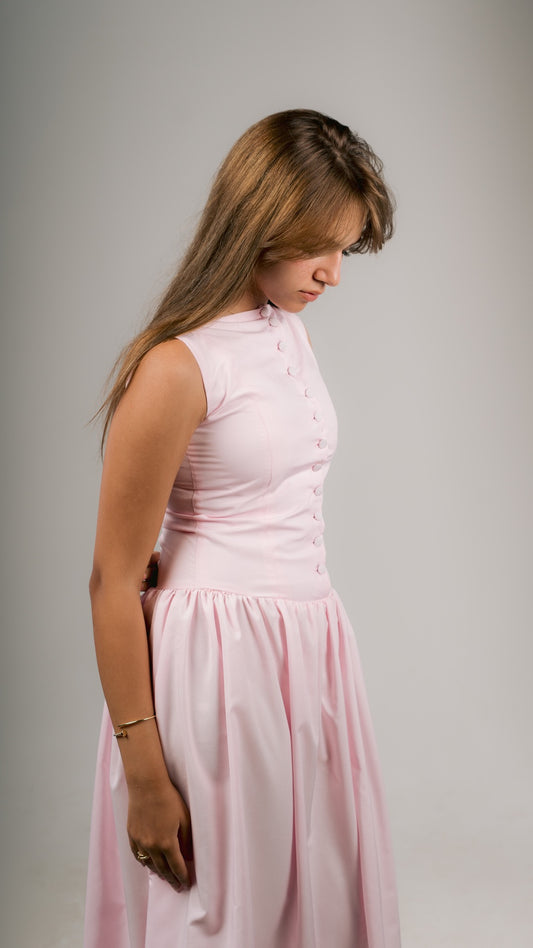 The Muse Dress with Removable Shoulder Flower Attachment in Daylily